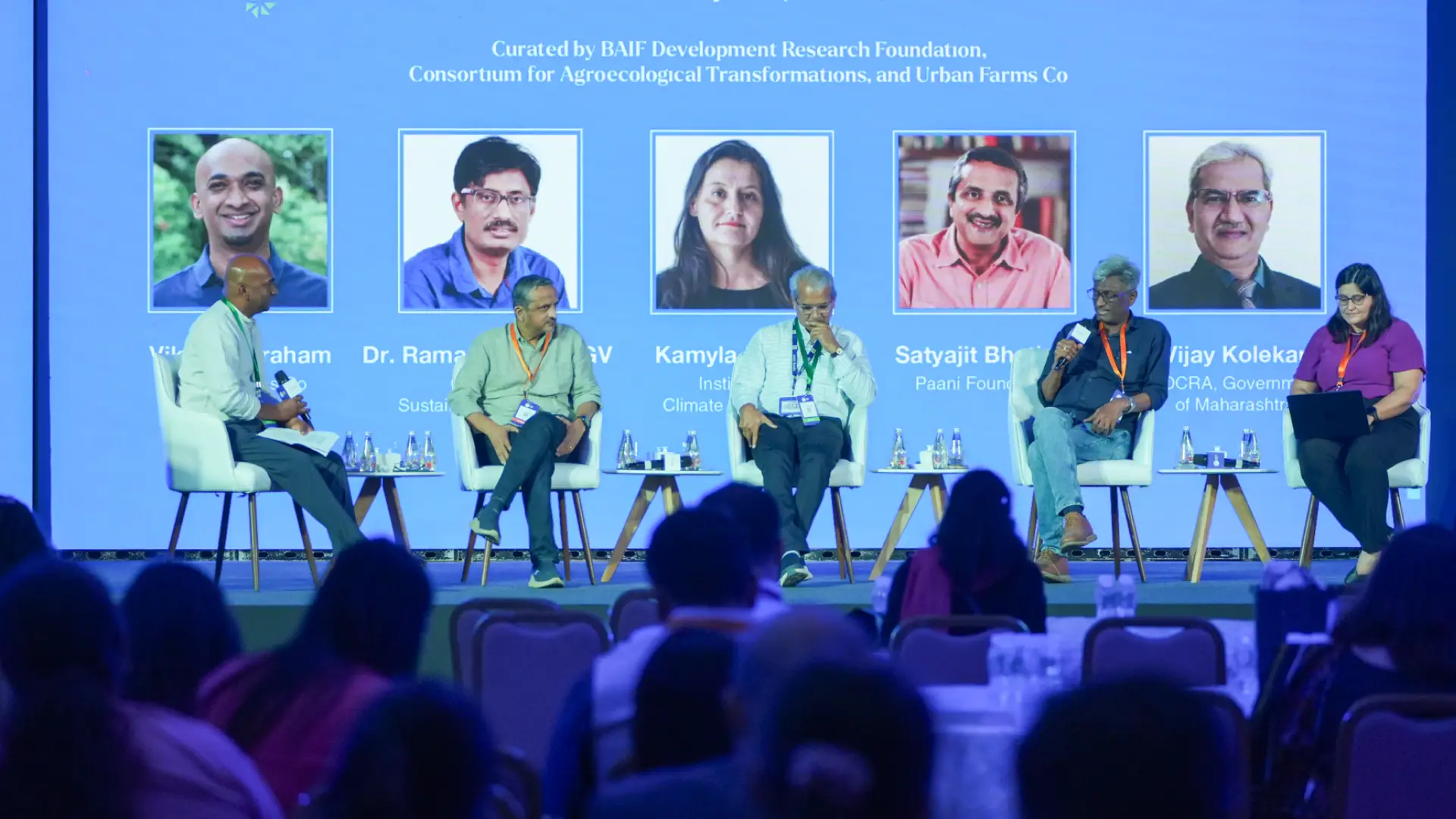 Vikas addressed a persistent paradox, that agroecological models have demonstrated impact for both people and planet, yet remain marginal in scale. Ramanjaneyulu deepened this reflection by pointing to the structural realities of subsidies, incentives and policies that continue to favour synthetic-input farming, despite increasing environmental and public health risks. For smallholder producers to change how they grow food is not easy. The financial, technical, and market architecture places the full burden of transition risk on smallholders, unless government or markets actively intervene. Satyajit then shifted the conversation from individual action towards collectivisation, drawing on Paani Foundation’s watershed experience in Maharashtra. When communities organise around water, they do more than solve for a resource constraint. They build trust, shared purpose, and the social infrastructure required to manage common goods. In his view, collectivisation is not an add-on but the foundation for scaling any ecological transition. Vijay reflected on Maharashtra’s Program on Climate Resilient Agriculture, which translated national climate research into sequenced, state-level interventions tailored to local stressors. He acknowledged that cross-departmental coordination remains one of the most difficult operational challenges, addressed in part through a consortium model built on partnerships with stakeholders across academia, civil soceity and private sector. Kamyla then brought in Brazil’s experience with mainstreaming agroecology, describing coalition models that link public credit, institutional markets, and multi-stakeholder alignment that is helping pilots scale beyond funding cycles. The conversation aligned on the fact that scaling requires shared risk, patient and long-term capital that can absorb risk, coordinated institutions, and collective action.